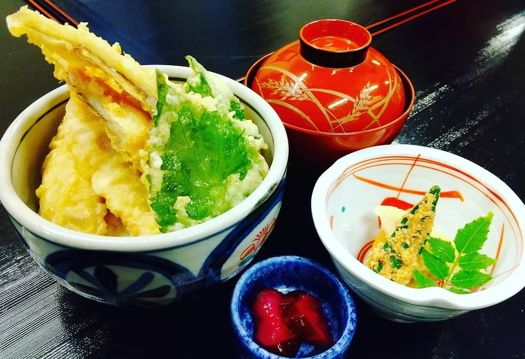 (穴子の天ぷら2本、小鉢、赤だし、香物)
