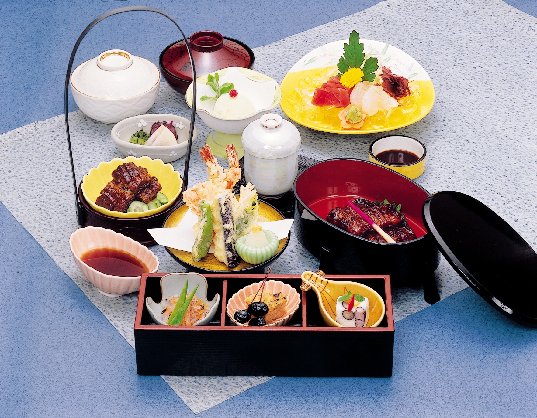 ・前菜 ・お造り(二種盛) ・蒲焼 ・揚げ物 ・蒸し物 ・御飯 ・きも吸 ・香の物 ・デザート